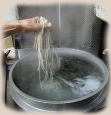 北海道幌加内の農家と焼畑式無農薬契約栽培した玄蕎麦を低温倉庫に保管し、必要な分だけ製粉します。ひき立て打ち立て茹でたてが一番です。