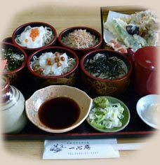 枯本節(雄節)二年物だし取り用削り節丁寧にそばを打つ打ちたてのそばゆでたてのそばそれぞれの味が楽しめる五色天てんぷら油は毎日取り替える季節のてんぷらもお楽しみボリュームのあるセットでお腹も満足