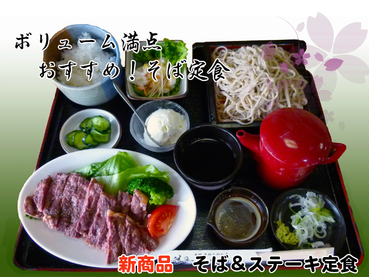 蕎麦屋のステーキとは言え自信を持ってお出しできるサーロインステーキを用意しました。 ステーキソースも評判の味!その味わいに満足!お腹も満足!デザートにアイスも付いて1780円!