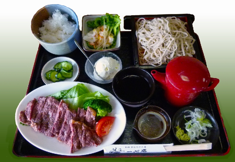 そば&ステーキ定食(柔らかサーロイン150g)
