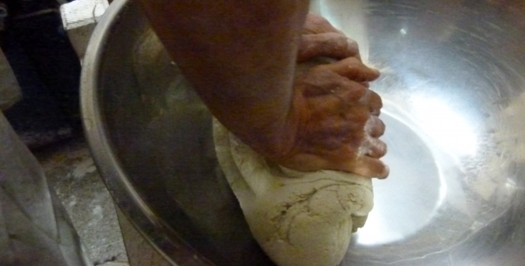 日本には四季があり、湿度・温度も毎日同じと言うわけには行きません。上手くは説明できませんが、この手で確認して「美味しいそば」を打っているつもりです。一寸の手抜きでもそばはへそを曲げてしまいます。